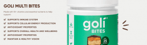 - No Nonsense, Just Delicious Wellness. Benefits in Every Bite: Goli Multi Bites are an everyday essential! Incorporating vitamins and nutrients into your daily routine just got tastier. Finally, feel good about caving into your cravings while getting the nutrients your body needs.